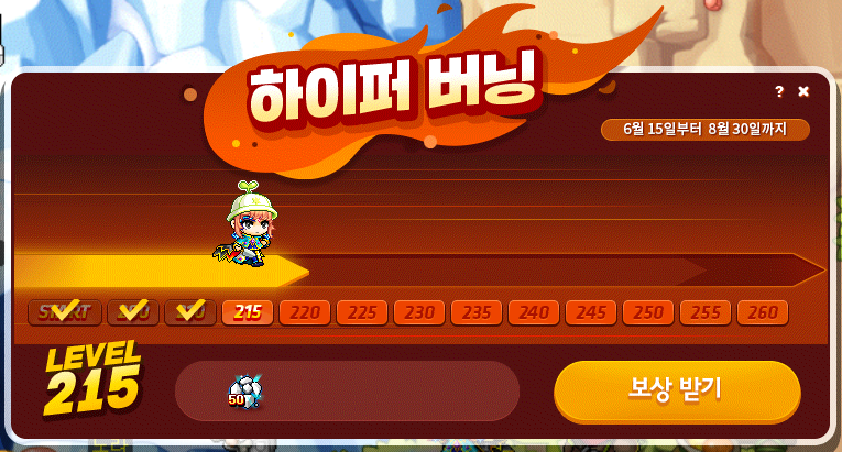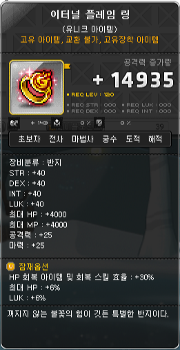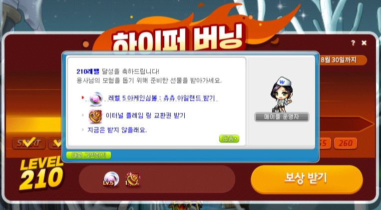 그렇게 바로 212 레벨을 달성했고, 하이퍼 버닝 보상으로 '이터널 플레임 링'이라는 것을 주네요?