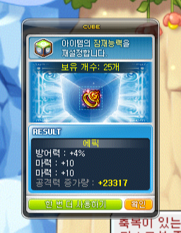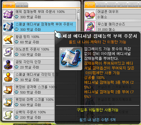 유니크 잠재능력이 기본적으로 붙어져 있어서 코인샵에서 에디셔널 잠재능력을 부여해서 마력을 띄워보려고 합니다.