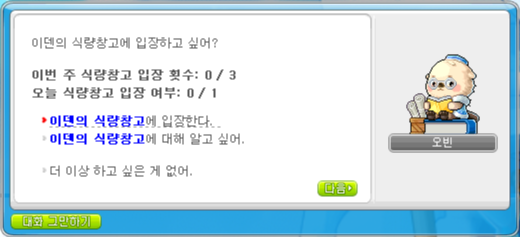 그리고 지금은 이벤트 중이라서 경험치를 대량으로 얻을 수 있는 이덴의 식량창고에도 입장했습니다.