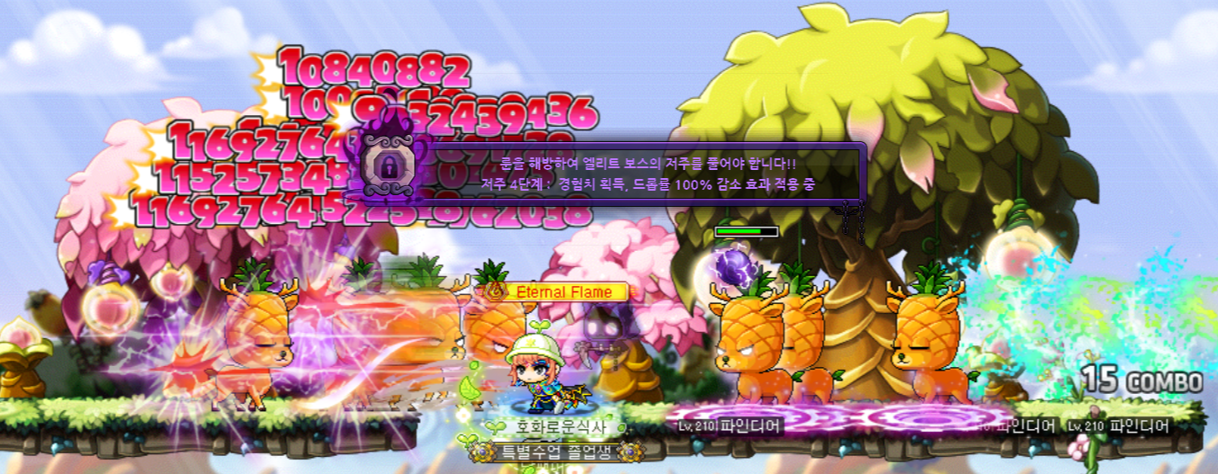 203레벨에서 레벨업을 하려면 경험치 31억이 필요한데, 7억이면 꽤나 많이 준다고 할 수 있네요. 지금은 하이퍼 버닝이라 달려야 하지만 버닝이 아니더라도 이 정도면 사냥 안 하고 천천히 레벨업 할 수 있을 것 같네요.