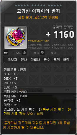 그리고 여기서 템세팅을 조금 더 해주기로 했습니다. 이피아의 장신구 10개를 구매를 해서 '고귀한 이피아의 반지'를 만들기로 했습니다.