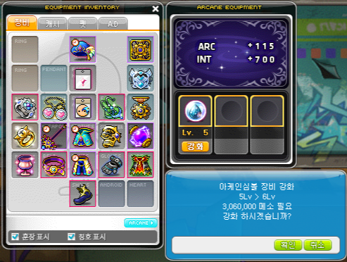아케인 심볼이 주스탯을 꽤나 많이 올려주기 때문에 5차 전직 이후 가장 가성비가 좋은 스펙업 수단이기 때문에 일일 퀘스트를 빼먹지 않고 매일 해주는 것이 좋습니다.
