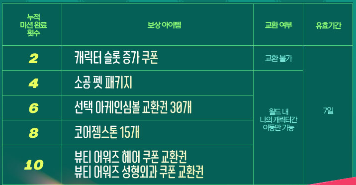 미션 완료를 하면 누적 횟수에 따라 보상을 받게 됩니다.