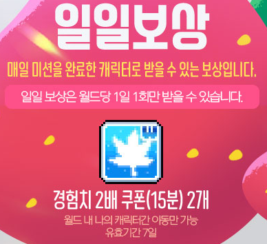 일일보상으로 '경험치 2배 쿠폰' 2개는 무조건 얻을 수 있고,