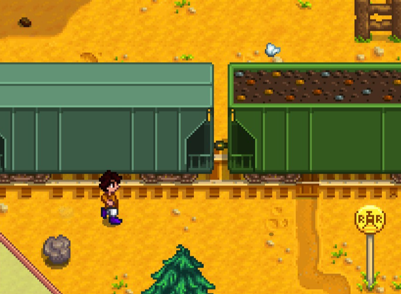 그리고 가끔씩 기차가 스타듀 밸리를 지나가고 있다는 문구가 뜨는 경우가 있는데, 재빨리 기차역으로 달려가면 이렇게 소소한 아이템을 무료로 얻을 수 있습니다.