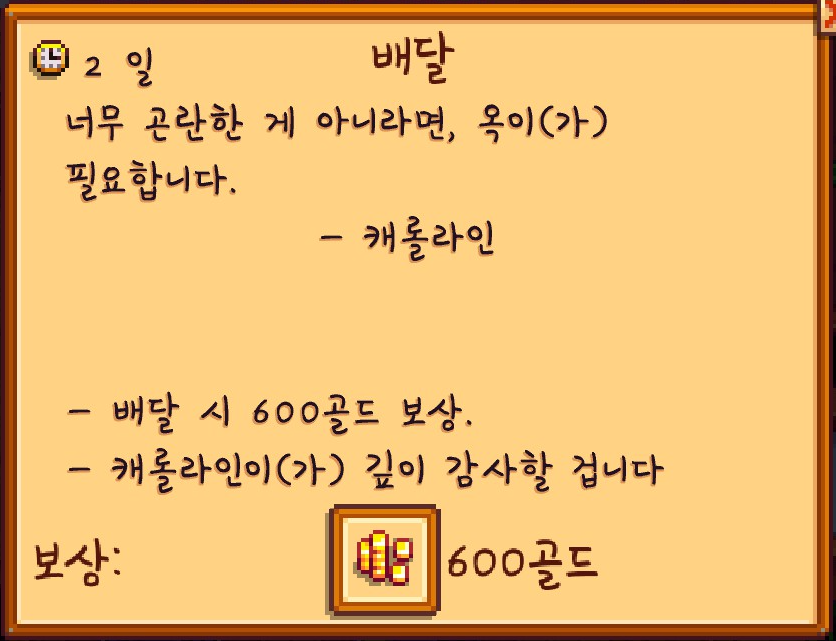 운좋게 재료들이 다 있어서 퀘스트를 한 번에 3개나 클리어를 했습니다. 골드도 받고 호감도도 올릴 수 있으니 일석이조네요.