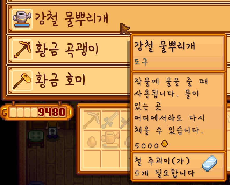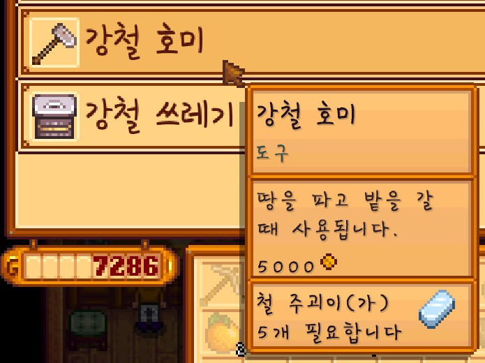 골드를 모아서 이번에는 강철 호미 의뢰를 맡겼고,