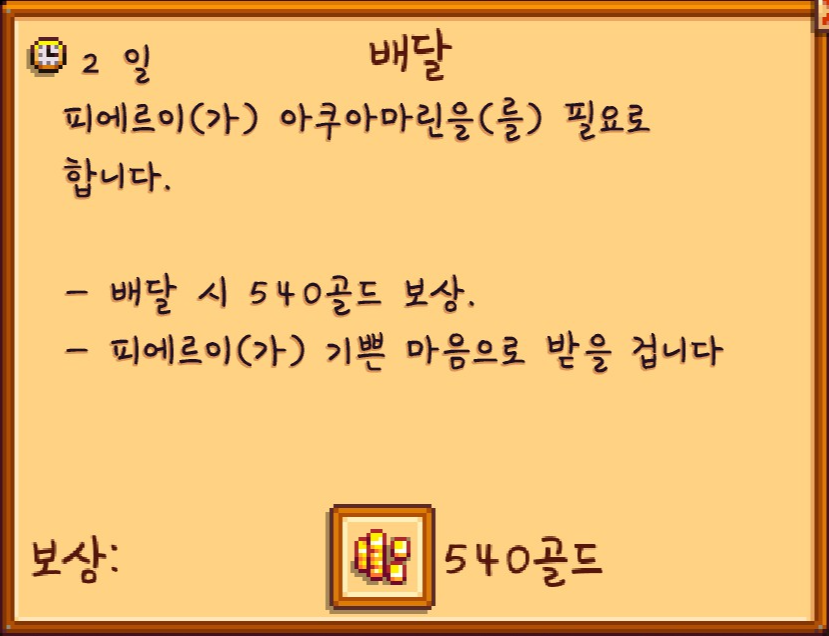 그래도 뭐 어쩔 수 없죠. 호감도는 챙겨야 하니까 생일선물을 챙겨주고, 피에르 퀘스트도 해줬습니다.