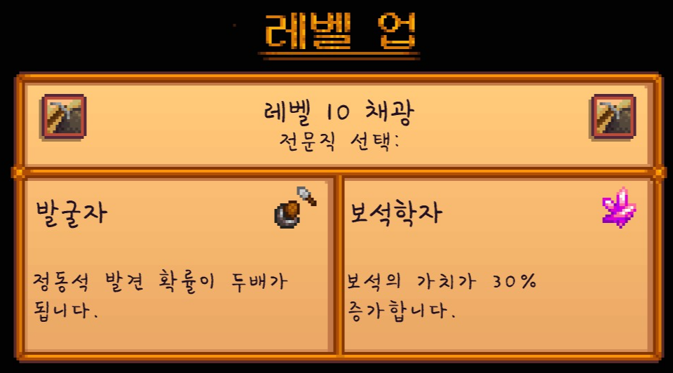 마침 채광 10레벨을 달성해서 스킬을 고를 수 있게 되었습니다. 저는 고민도 하지 않고 바로 '보석학자'를 골랐습니다. 이러면 광물들을 팔면 꽤나 쏠쏠한 수입을 올릴 수 있더라고요.