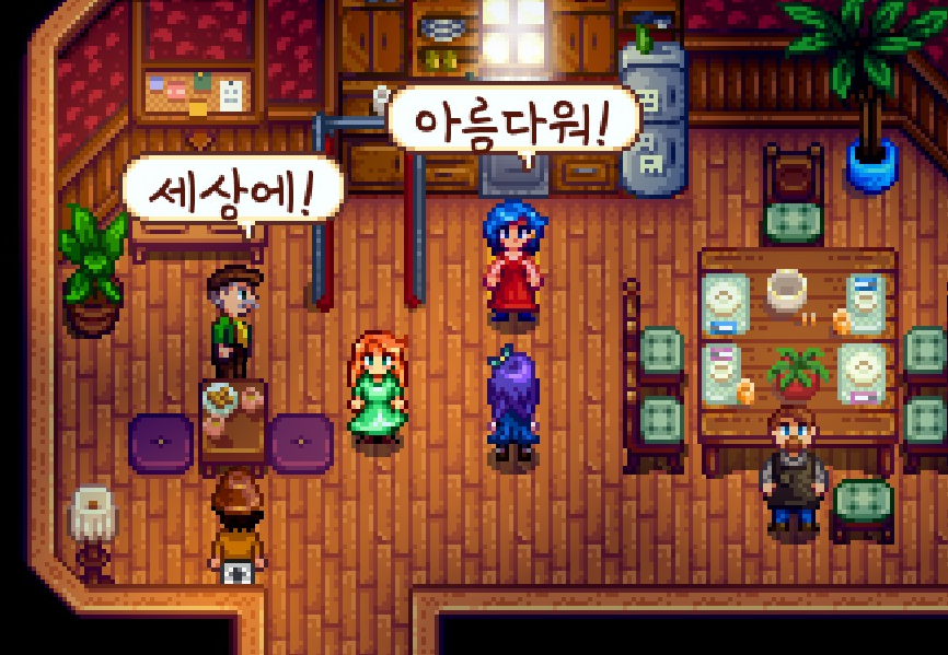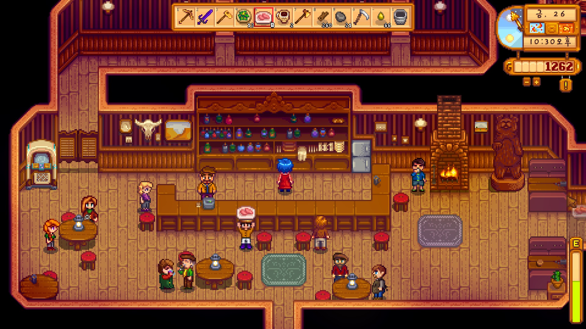 금요일 저녁 주점으로 가면 많은 NPC들이 모여있는데요. 이때에 맞춰서 선물들을 준비하면 호감도 관리를 쉽게 할 수 있습니다.