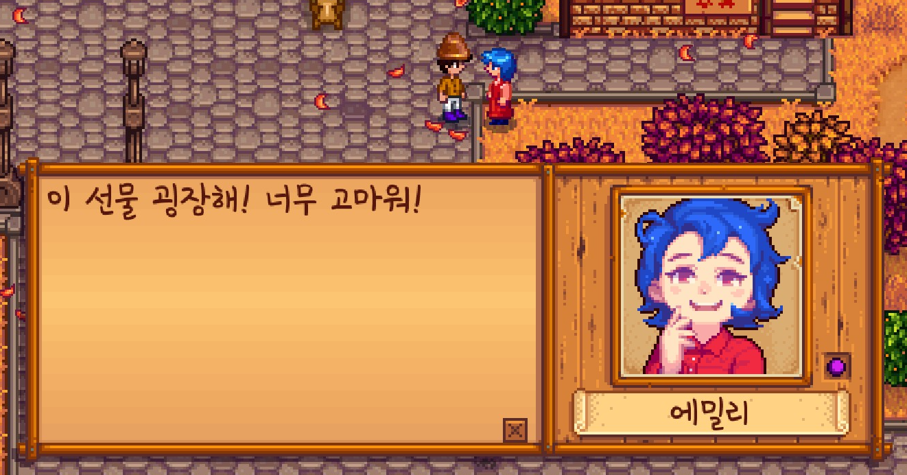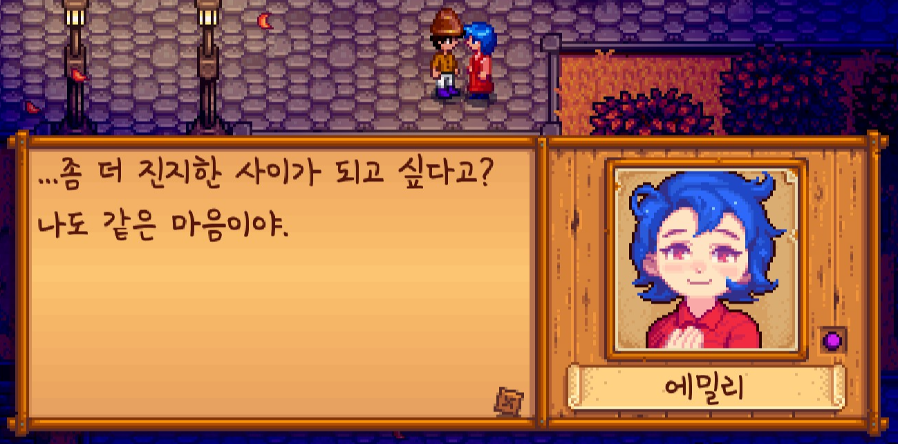 이어서 에밀리 호감도 이벤트를 봤습니다.