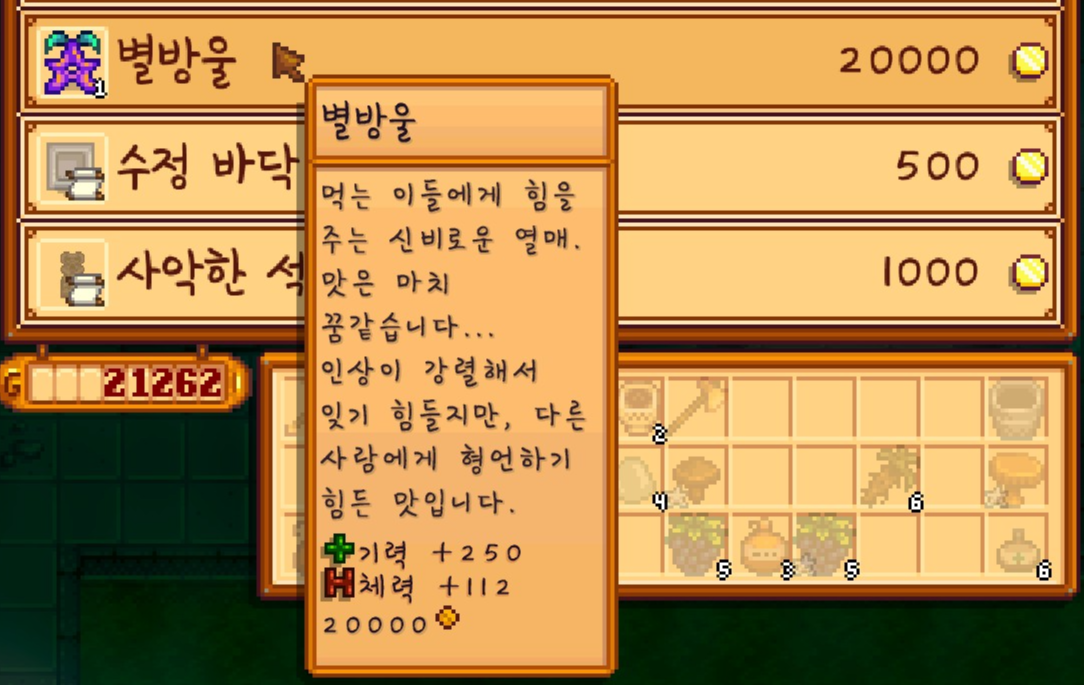 그리고 크로버스한테 별방울을 구입했습니다. 이건 딱 한 번만 구매할 수 있는데 먼저 구매하기로 했습니다.