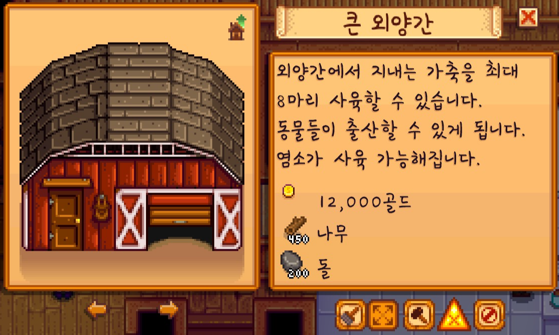 마침 모아둔 재료와 돈이 남아있어서 바로 외양간도 확장 의뢰를 맡겼습니다.