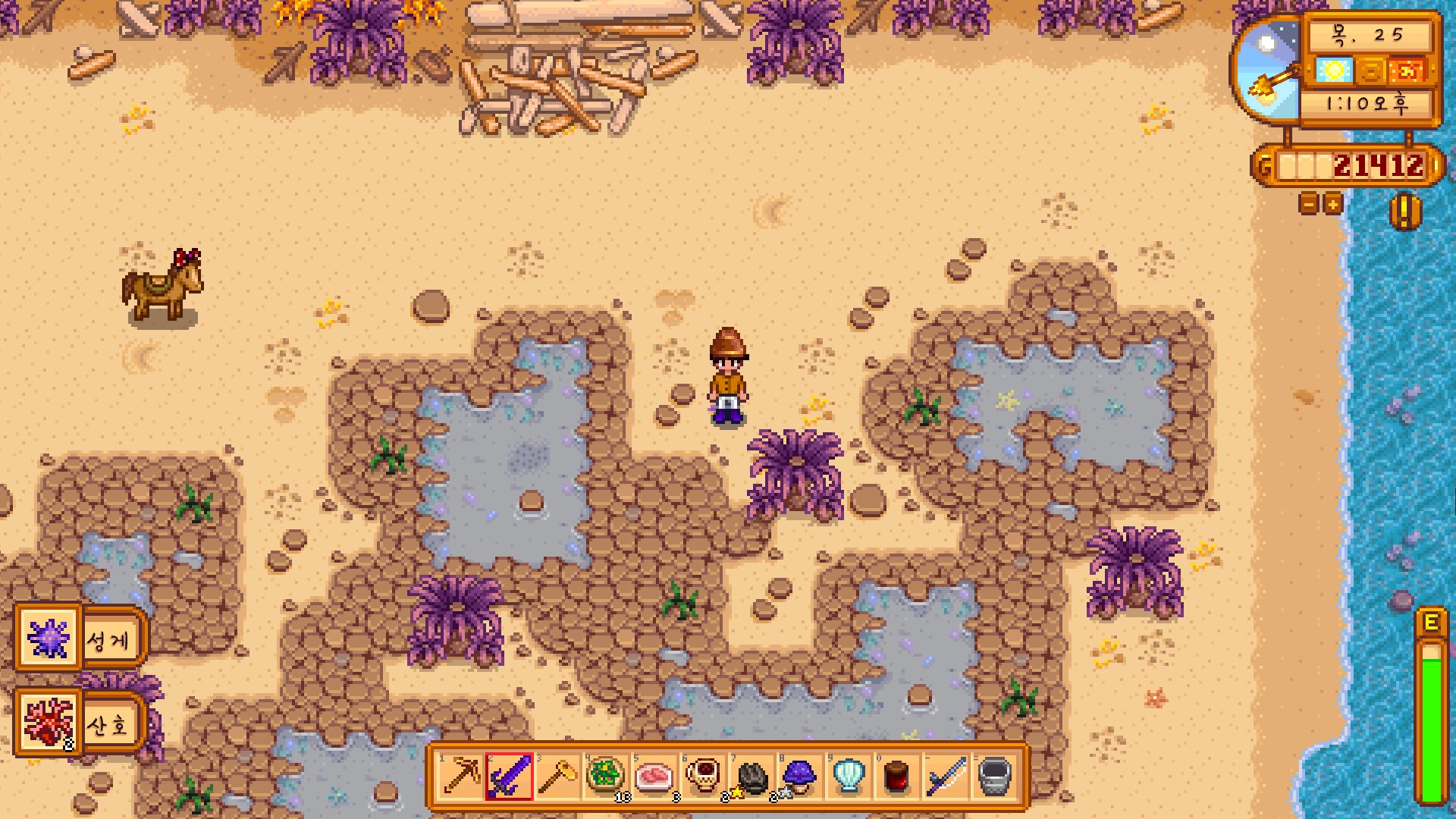 근데 해변으로 갔는데 없더라고요. 알고 보니까 무지개 껍데기는 여름에 나온다고 합니다. 돼지 마차에서 사는 게 아닌 이상 꼼짝없이 2년 차 여름까지 기다려야겠네요...