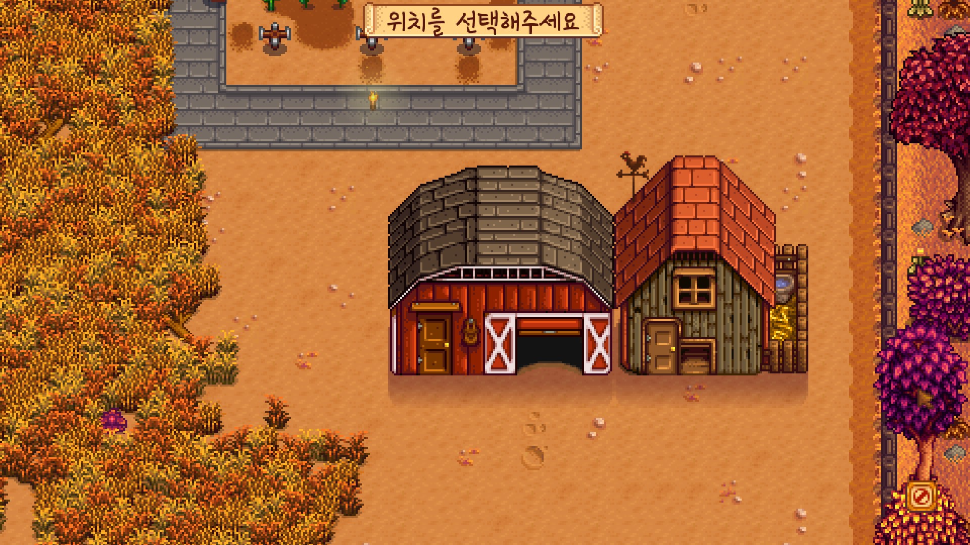 나중에 농장을 꾸미기 위해 일단 닭장과 외양간의 위치를 옮겼습니다.