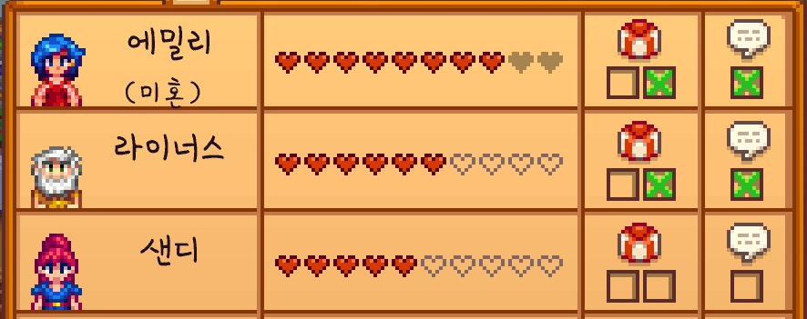 에밀리 호감도 8칸이 채워진 것을 확인했습니다.