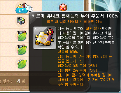 그리고 이벤트로 카르마 유잠 주문서를 얻었습니다.