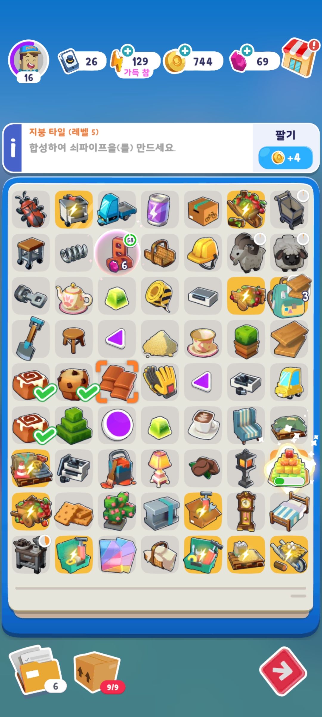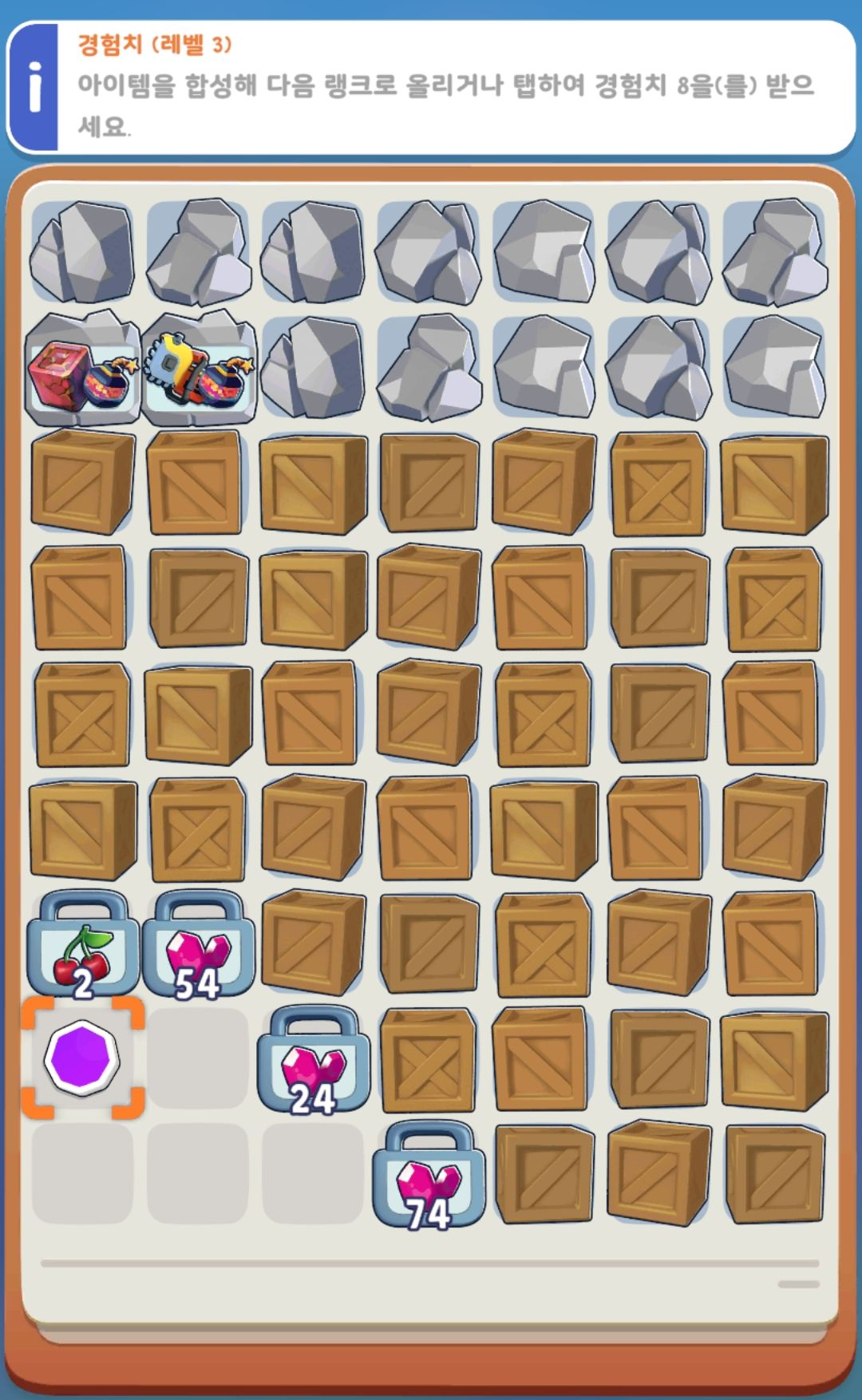 같은 단계의 아이템을 합성하면 상위 아이템이 생성되고, 합성하는 데에는 에너지가 필요하다는 것이죠.
