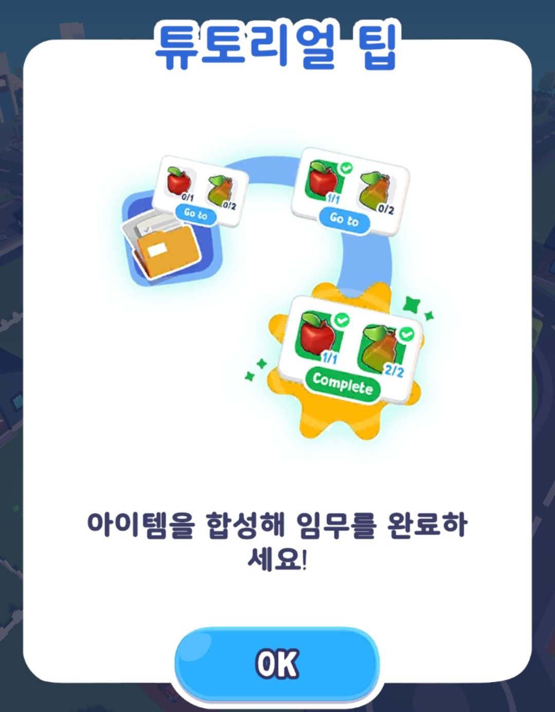 각종 아이템들을 합쳐서 지역들을 발전시키는 퍼즐 게임입니다.