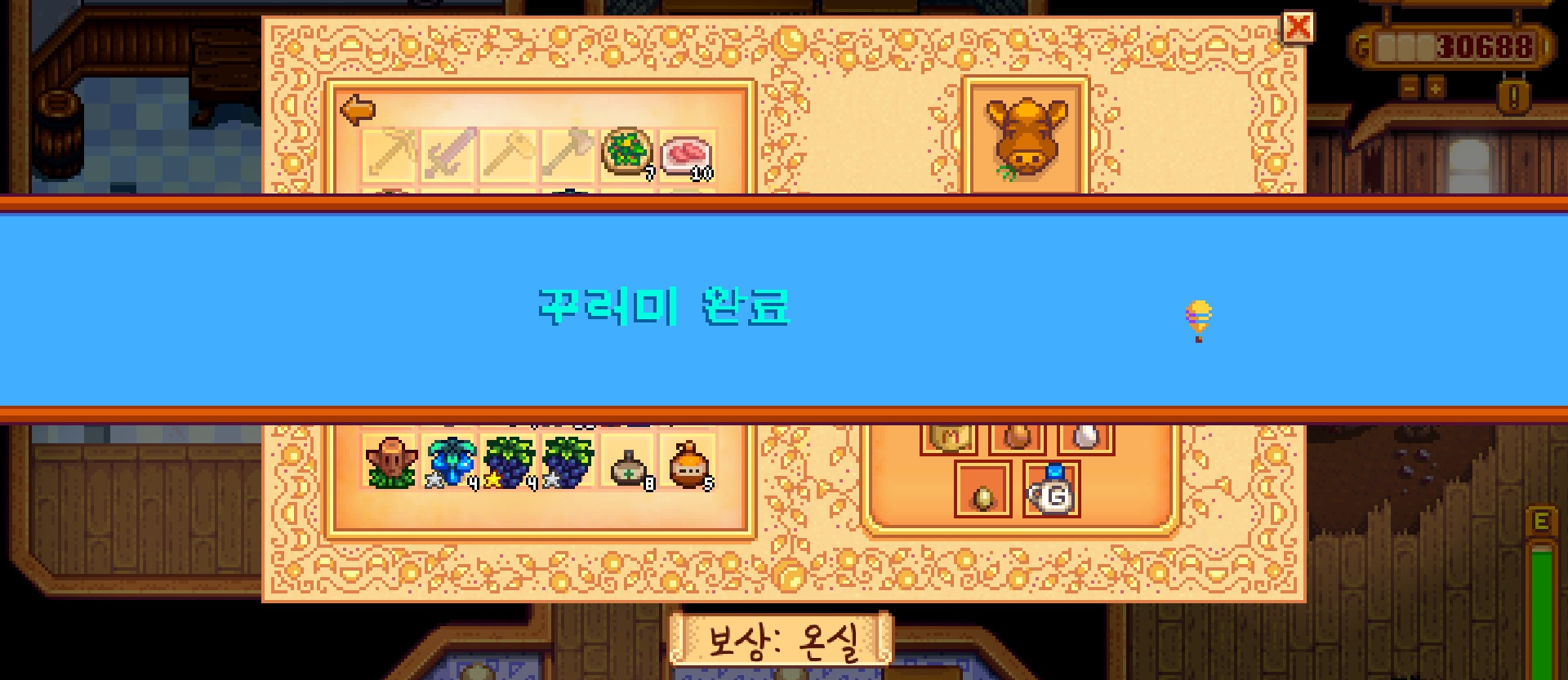 그리고 농장도 천천히 꾸며지는 모습을 보니까 이제서야 좀 제대로 된 게임을 하는 것 같아서 마음에 드네요. 겨울은 이렇게 소소하게 즐기는 맛이 있는 것 같습니다.