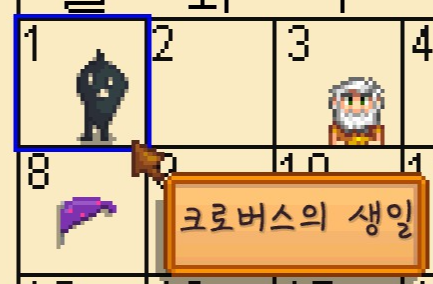 마침 오늘이 크로버스 생일이었는데요. 이 친구는 마을 주민들과 달리 좋아하는 선물이 약간 다른 편이라서 석영 같은 선물을 줬습니다.