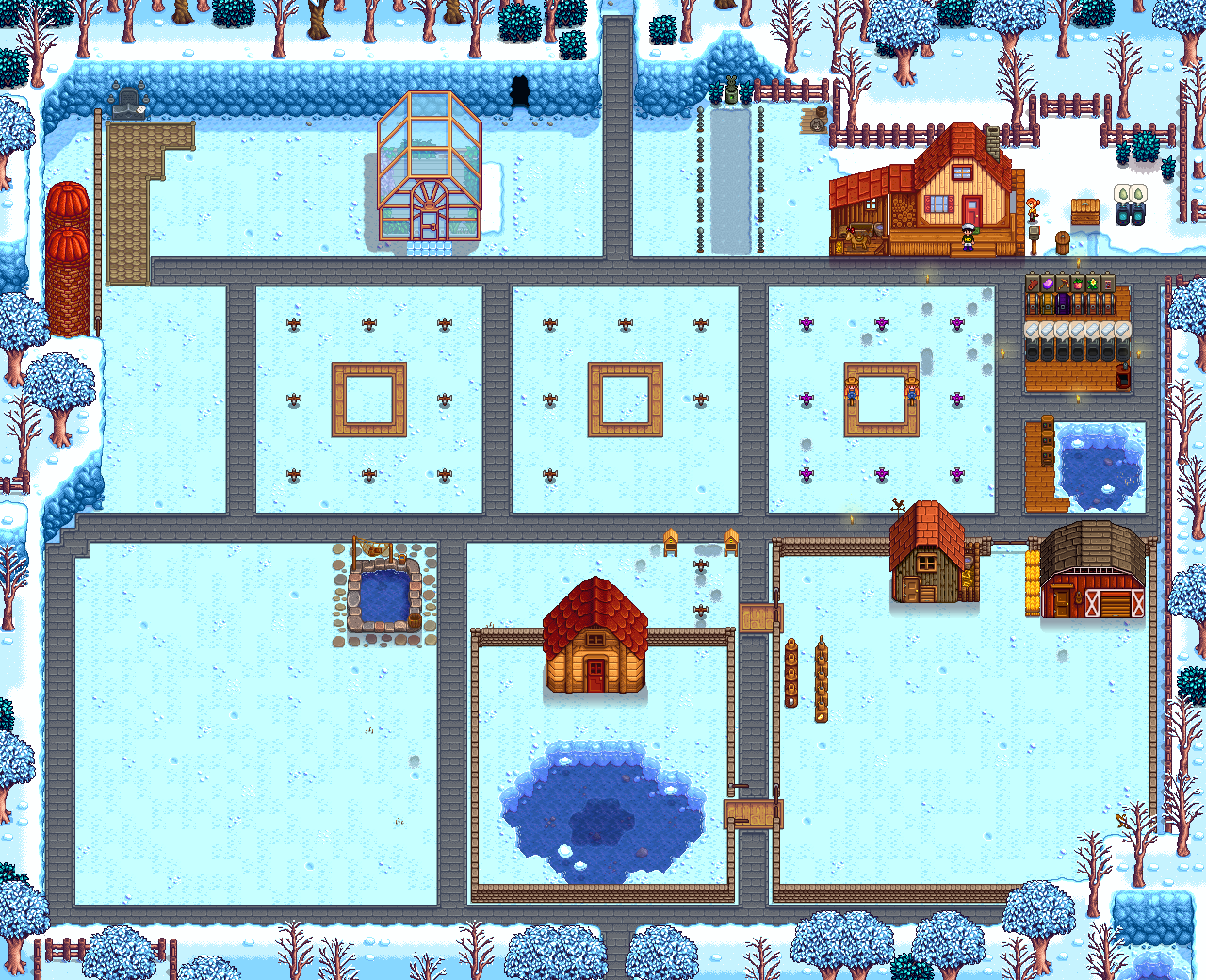 아무튼 겨울 14일 동안 꾸민 농장의 모습입니다. 여기에 무엇을 더 채울지는 아직 생각을 못했는데 나머지는 천천히 채워나가지 않을까 싶습니다.