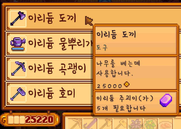 이리듐 주괴를 들고가서 도끼 업그레이드 의뢰를 맡겼습니다.
