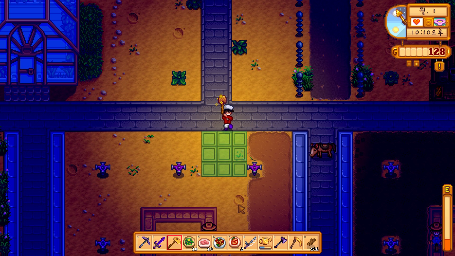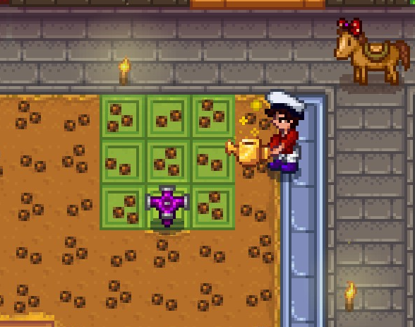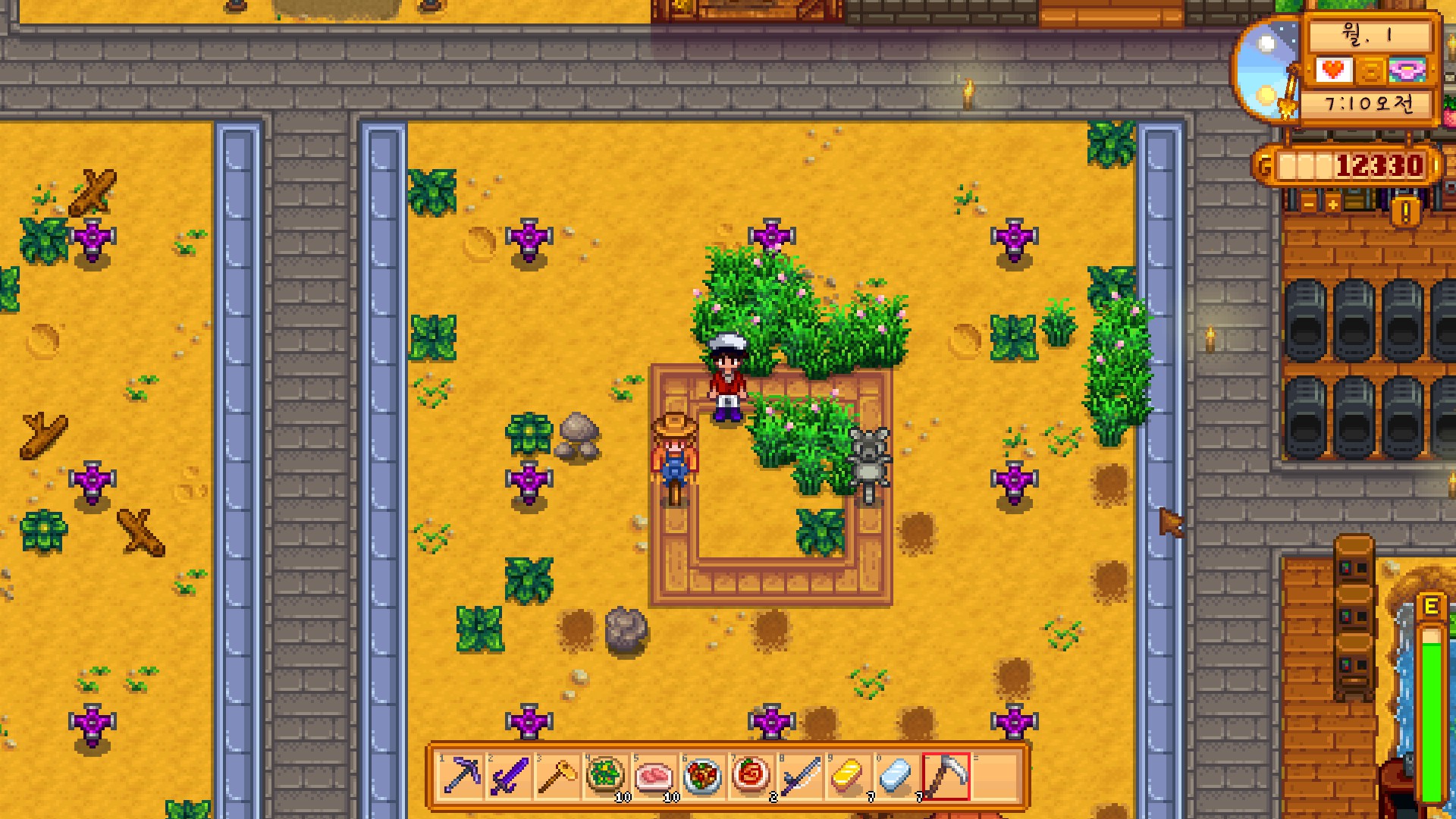 그렇게 일일이 씨앗을 심고, 물도 줬습니다. 1일에는 농장 정리가 잘 안 되어있으면 스프링클러가 제 기능을 못해서 일일이 줘야됩니다.