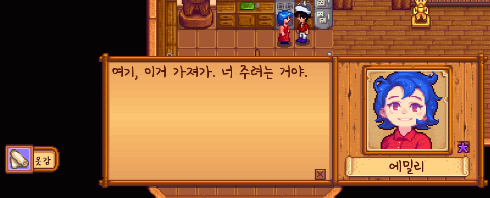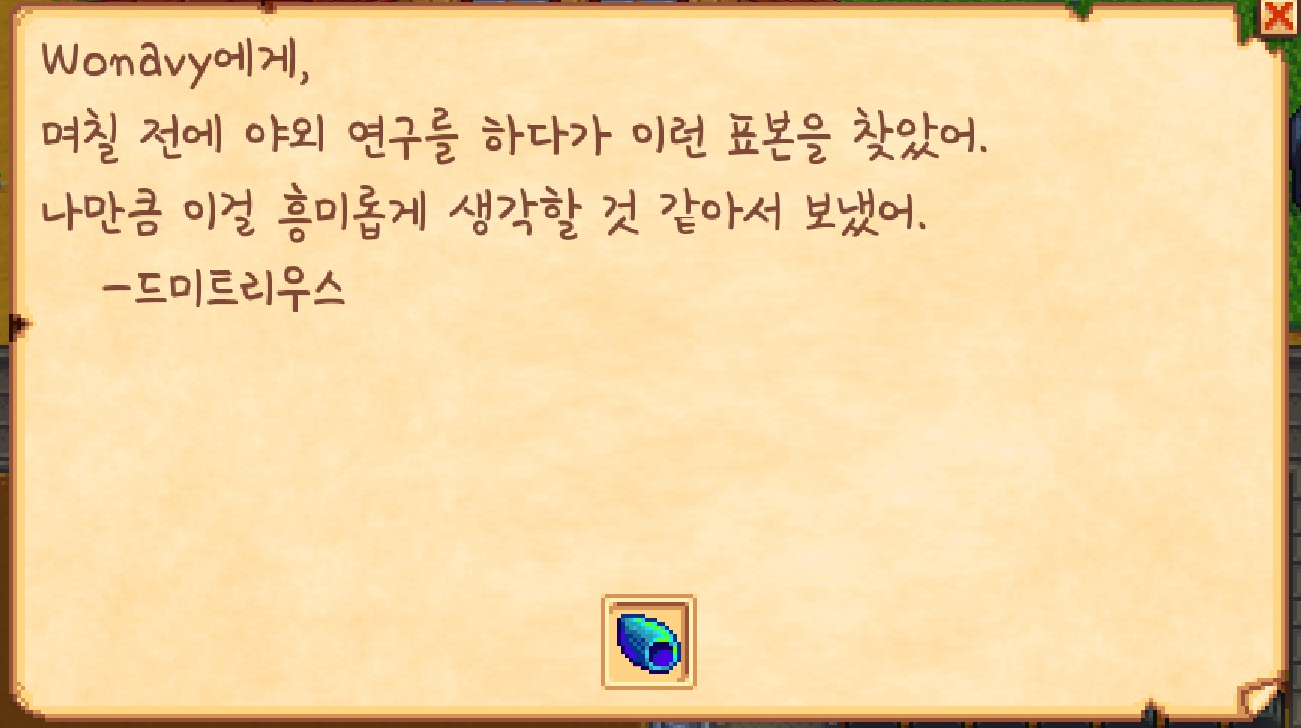 배우자와 대화를 하다보면 이렇게 아이템을 얻을 수 있습니다. 아이템은 NPC 마다 다르다고 하더라고요.