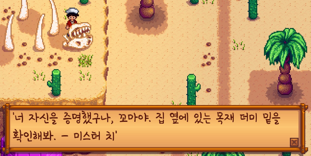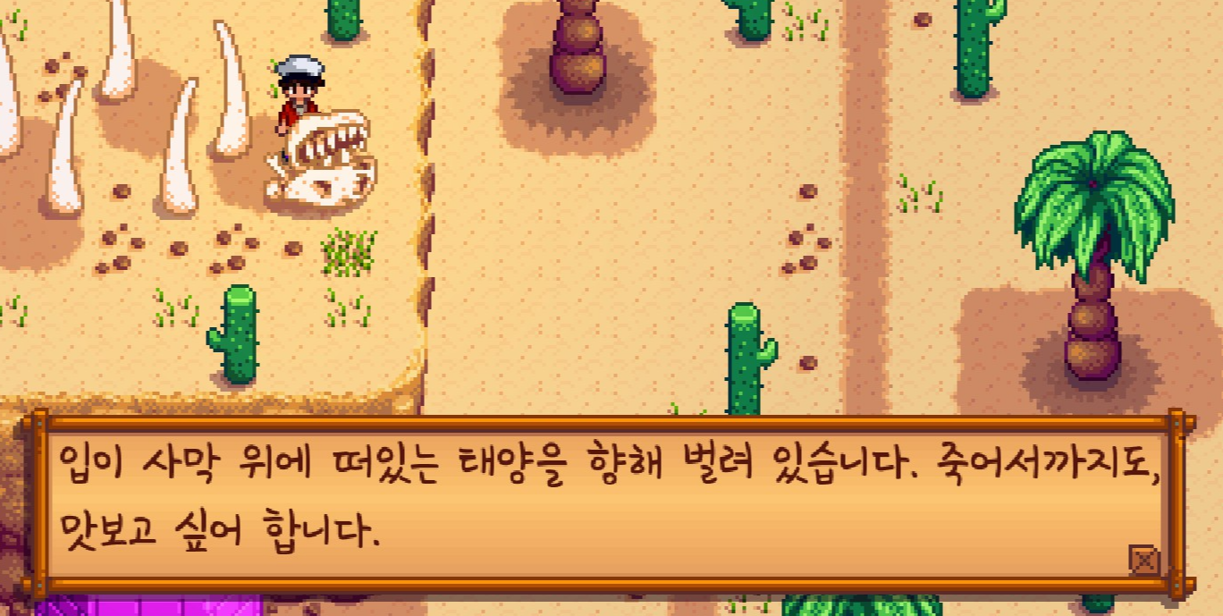 사막에 있는 해골을 조사하면 이렇게 힌트를 주는데요.