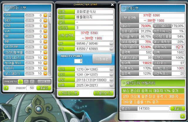 그렇게 주스탯 2.0, 스공도 거의 400만에 도달을 했습니다. 아직 아케인 무기, 앱솔랩스 전체 장비가 제대로 완성되지 못했다는 것을 생각하면 나중에는 진짜 노말 스데미도 도전 해볼 수 있을 것 같습니다.