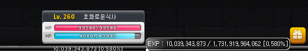 중간에 260 이후 부터는 경험치가 어느정도 되나 확인을 해봤는데요. 260 → 261로 가기 위해서는 경험치가 무려 1조 7300억 가량이네요?