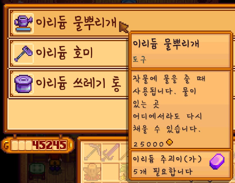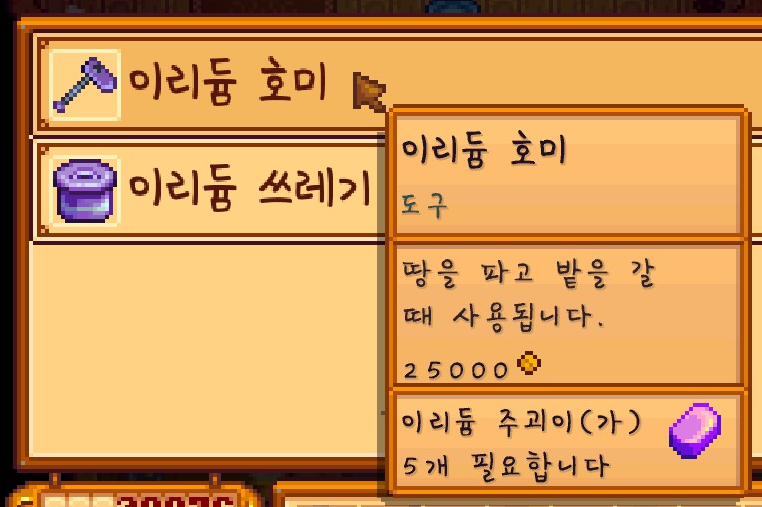 곧바로 이리듐 호미 업그레이드 주문을 했습니다. 사실상 도구 업그레이드를 다했다고 볼 수 있겠네요.