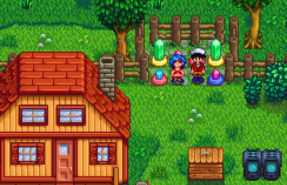 집 뒤쪽을 보면 약간의 공간이 있습니다. 평소에는 비어있다가 결혼 후 NPC가 해당 장소를 개인 공간으로 사용하게 됩니다.