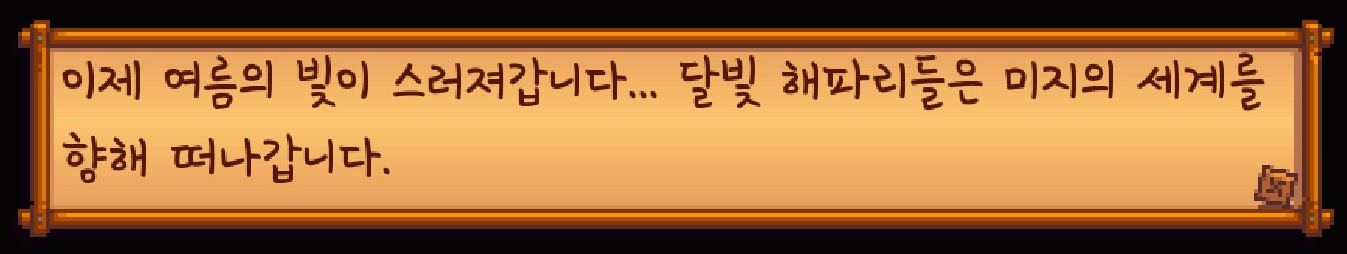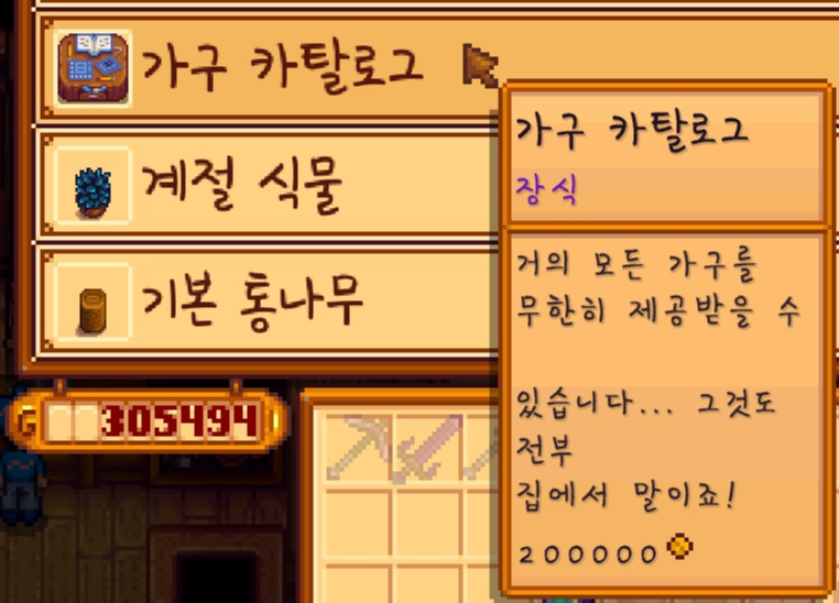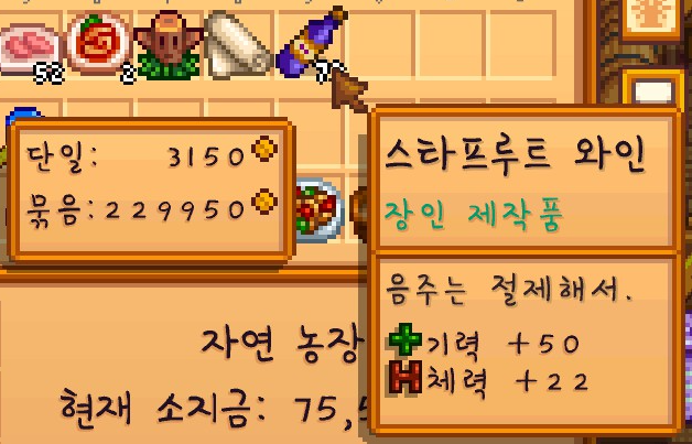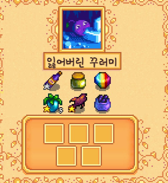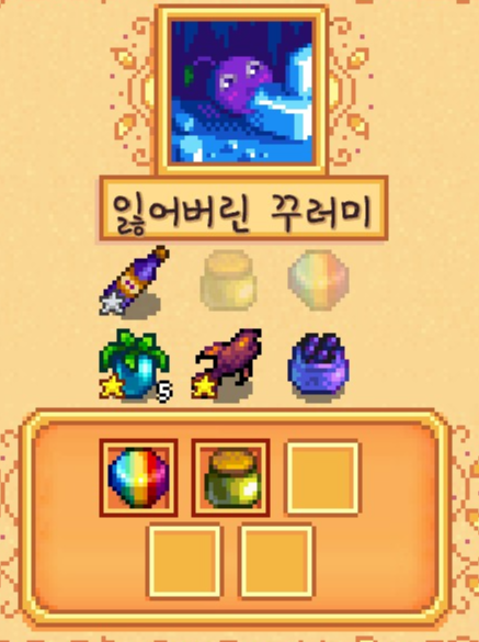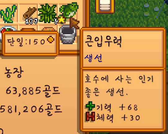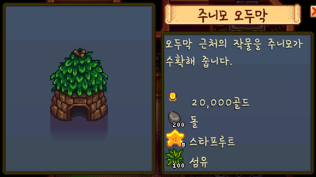 이 스타후르츠는 판매하지 않고 일단은 모아두기로 했습니다. 나중에 주니모 오두막을 짓기 위해서 스타후르츠가 필요하기 때문이죠.
