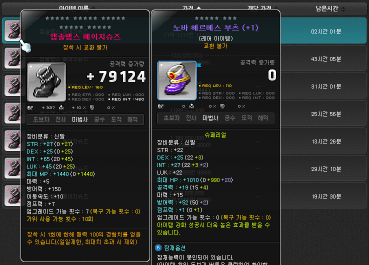 현재 노바 서버에서는 개당 1100만 메소에 거래되고 있는데, 일단 업그레이드보다는 판매를 해서 템세팅을 하는 것이 좋다는 글들이 많이 보이더라고요?