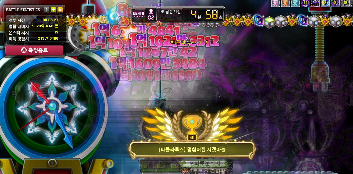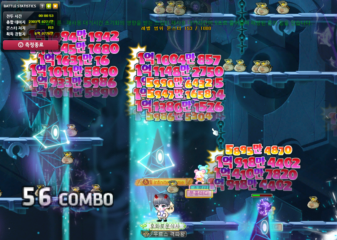 전과 비교하면 주스탯은 3천, 스공은 80만 정도 올랐는데 이게 17억에 맞는 스펙업인지는 잘 모르겠네요. 아무튼 주스탯을 올렸는데도 세르니움 투킬은 커녕 4-5킬 정도 나오더라고요. 아직 한참 멀었습니다.