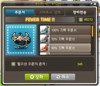 그리고 피버 타임에 맞춰서 주흔 30퍼 완작을 해보려고 했는데요.