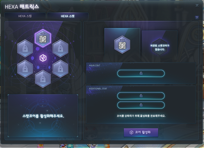 그리고 HEXA 스탯 쪽도 봤는데요. 쉽게 말하면 로아 돌 깎는 시스템과 상당히 유사한데 이게 솔 에르다를 빨아먹는 시스템이라고 하는데, 저는 일단 활성화를 하고 대충 깎고 쭉 이용하지 않을까 싶습니다.