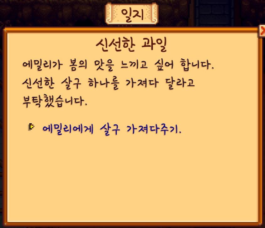 지금까지 쌓여있던 퀘스트 중에서 살구를 가져다주는 퀘스트가 있었는데요.