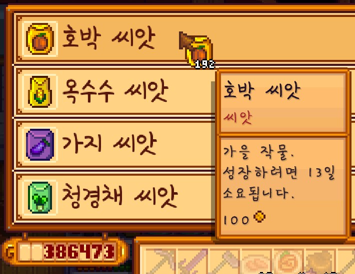 그리고 다시 호박 씨앗을 구매해서 심어줬습니다. 호박도 단가가 높다보니 판매하니 꽤나 큰 돈을 벌 수 있었습니다.