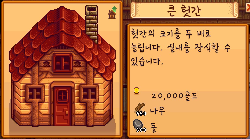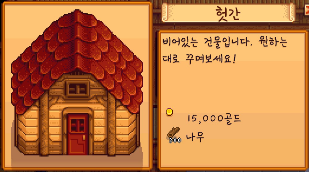 헛간 안을 뭐로 채울지 고민이기는 한데 일단은 업그레이드를 먼저 하기로 했습니다.
