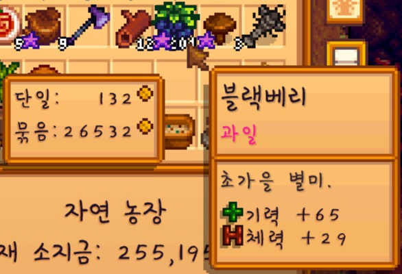 그리고 블랙베리가 열려서 보이면 바로 채집을 하고 있는데 전부 다 모아서 가격을 보니 꽤나 돈이 되서 모으는 재미가 있었습니다.