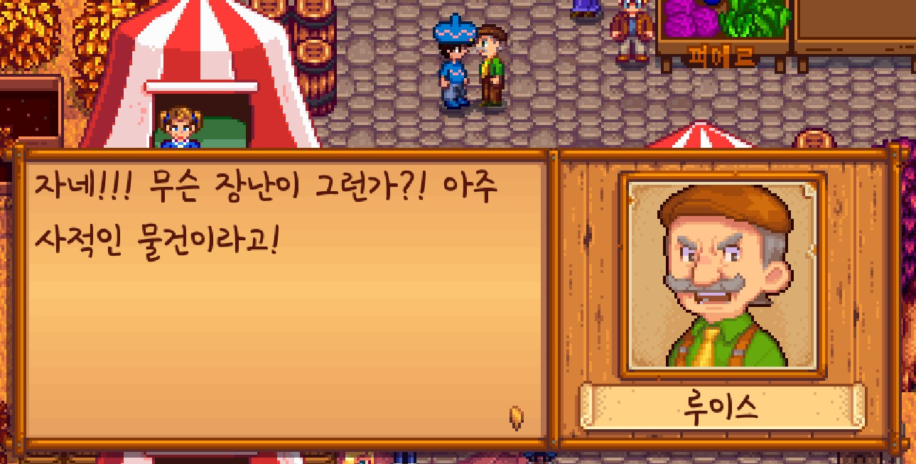 오늘은 스타듀 밸리 품평회 축제가 있었는데요. 이제 2년차면 이리듐 등급으로 도배를 할 수 있는데 그게 귀찮아서 1년차때 사용했던 행운의 반바지를 사용했습니다.
