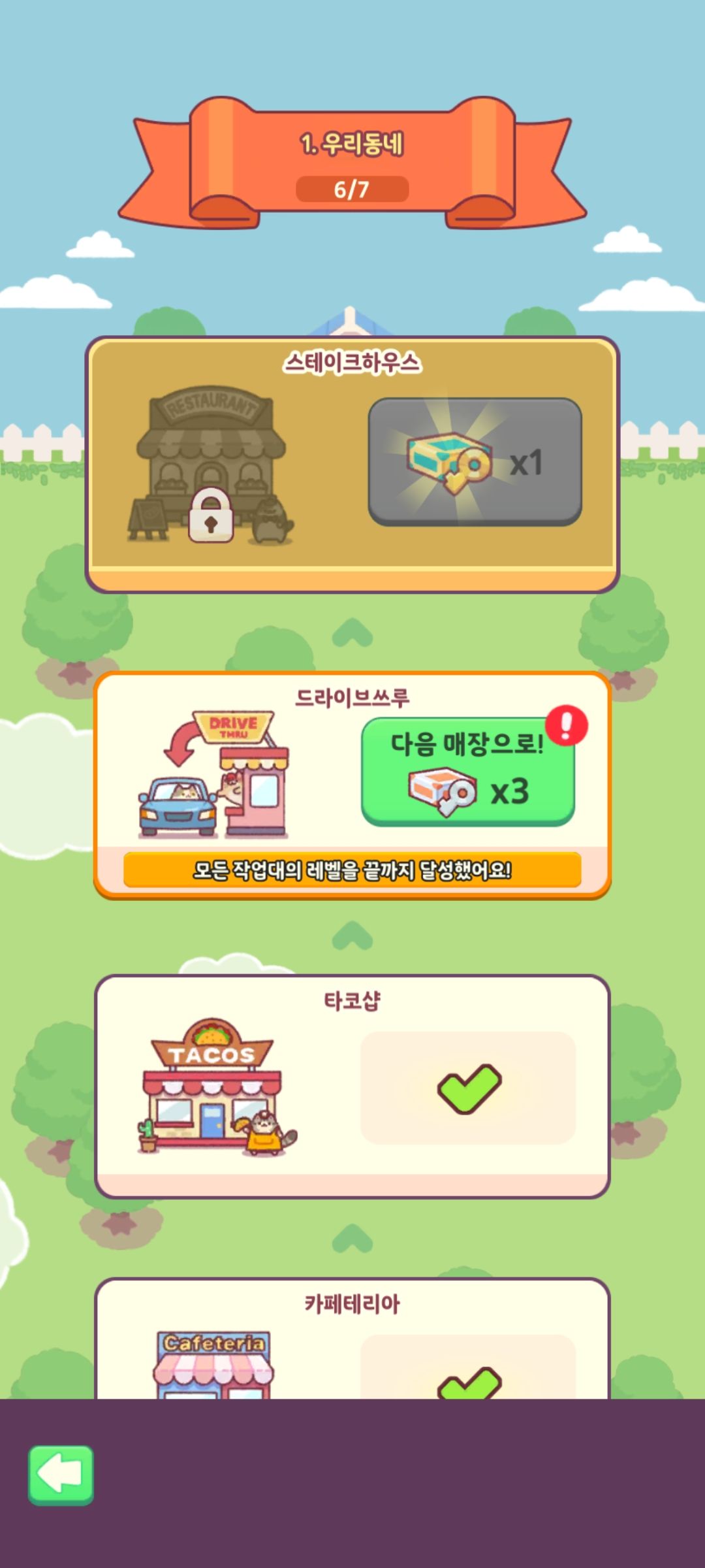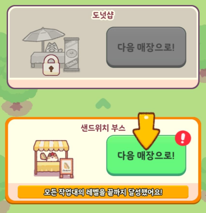 모든 작업대의 레벨을 끝까지 올리면 다음 매장으로 이동을 하게 됩니다.