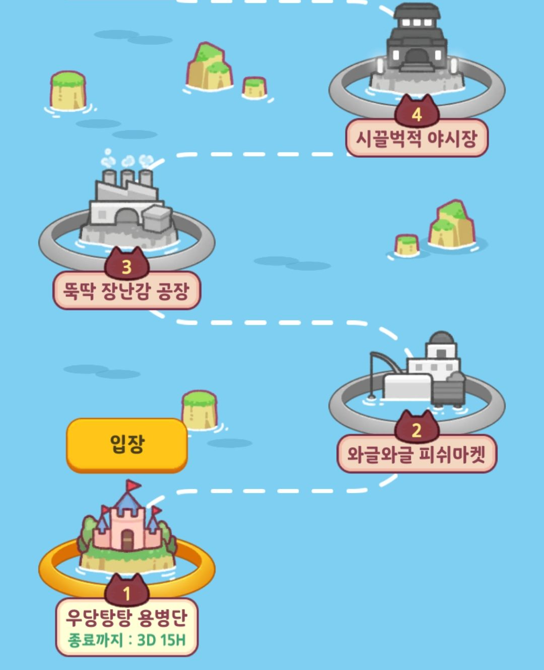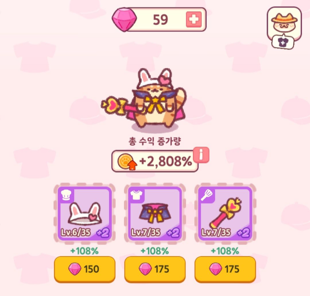 고양이 친구들이 가게를 운영하며 성장하는 방치형 게임입니다.