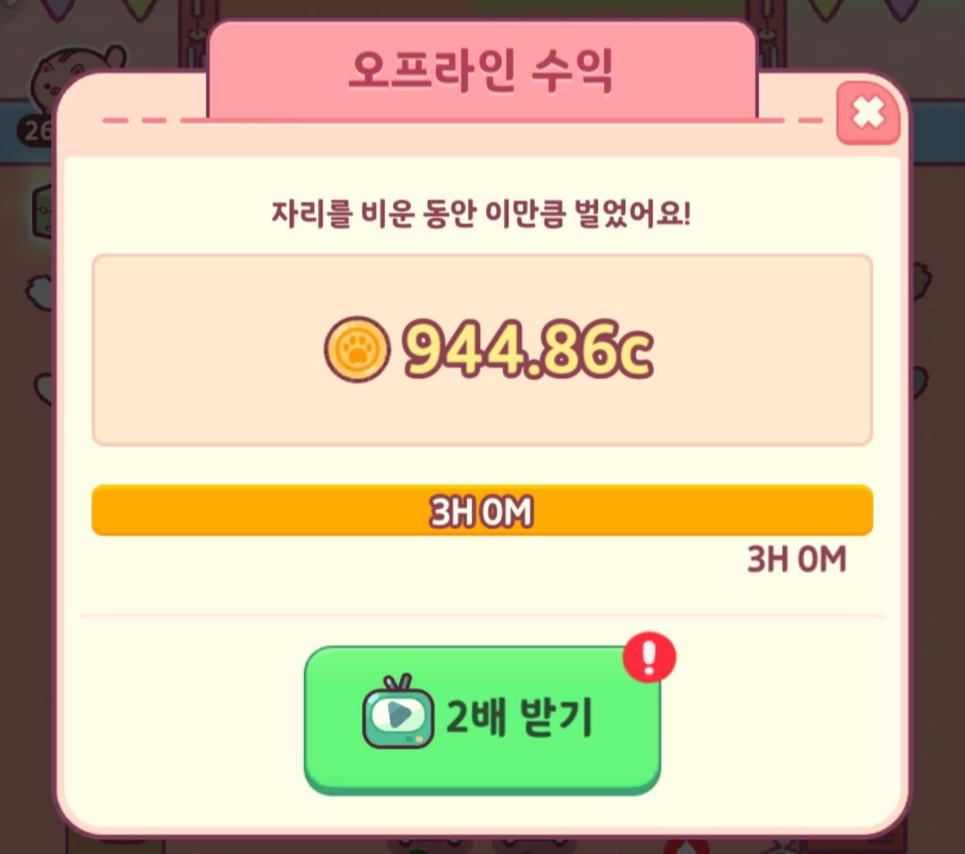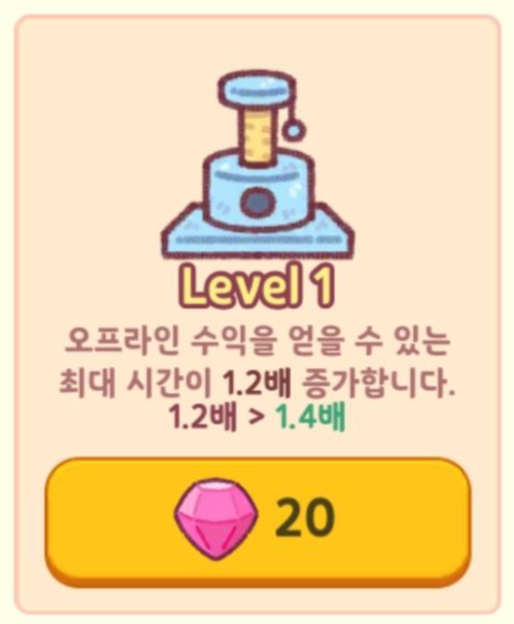 오프라인 수익은 기본적으로 3시간입니다. 하지만 컬렉션을 통해서 최대 시간을 끌어올릴 수 있더라고요.