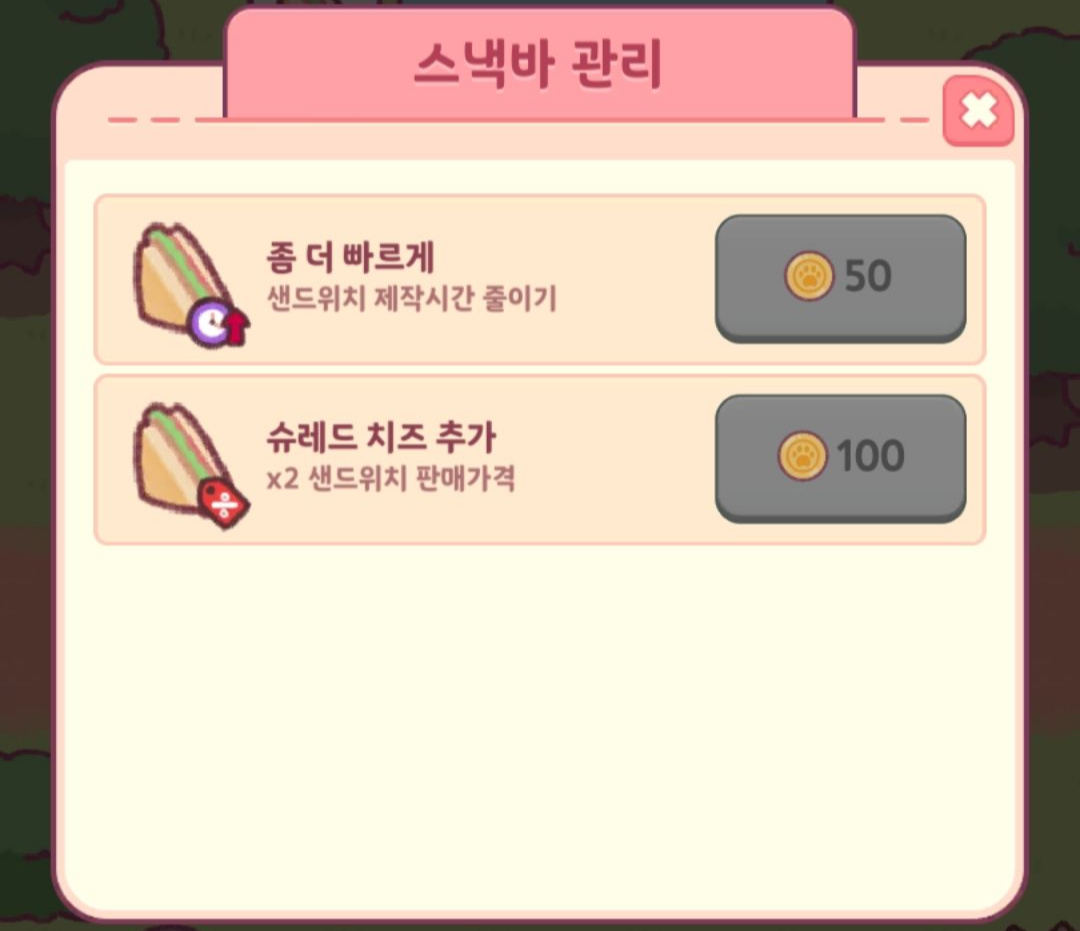 작업업대의 레벨을 올리거나 스낵바 관리를 통해서 다양한 유틸을 업그레이드 하면서 점차 성장을 해나가게 되는데요.