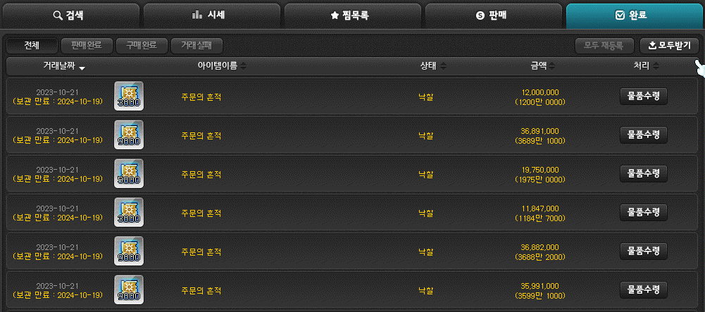 이후 경매장에서 주흔을 한 10만 장 정도 더 구매를 해줬던 것 같습니다.