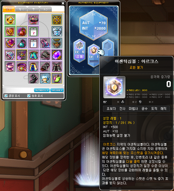 이렇게 아르크스 어센틱심볼을 받았습니다. 현시점에서는 스펙 올릴 방법이 심볼업이 제일 좋아서 쭉 올려줄 것 같네요.
